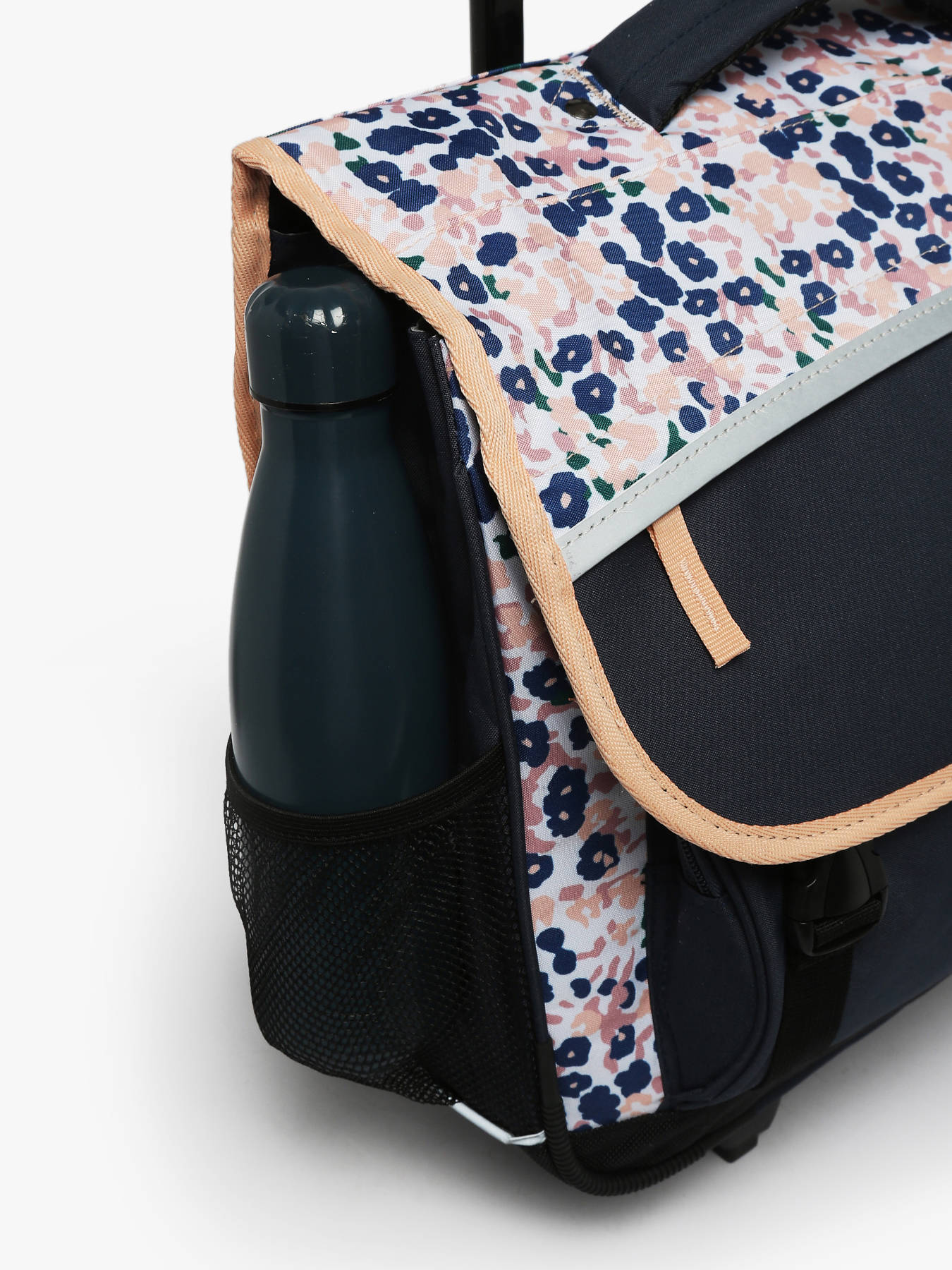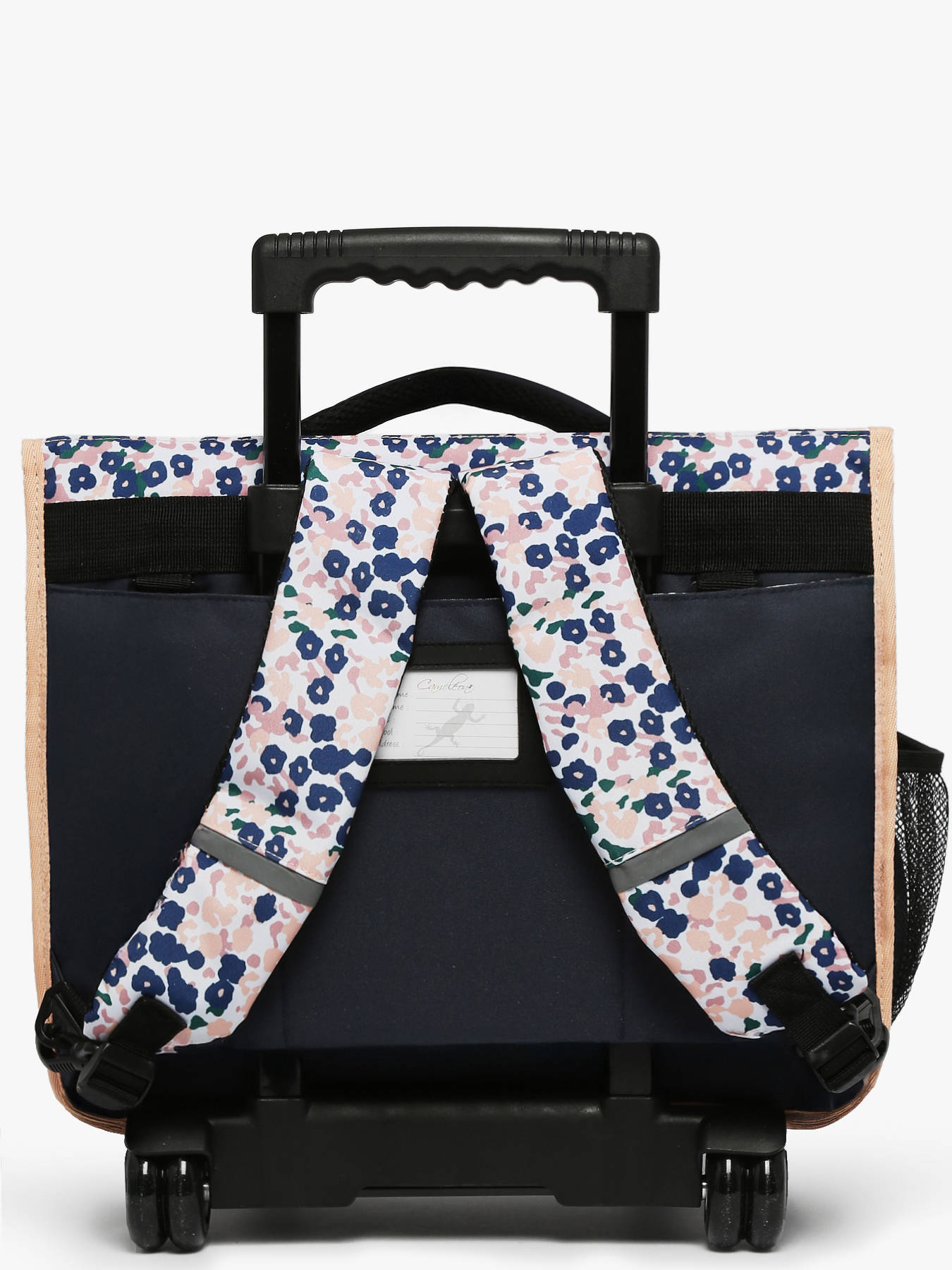 41 cm - 22 litres - 2.6 kg ~ Cartable enfant à roulettes 41 cm de la ligne Actual signé Caméléon. Ce cartable enfant convient parfaitement pour les classes de CM1 et de CM2. L'intérieur se divise en trois compartiments pouvant contenir toutes les affaires scolaires : cahiers formats 21x29,7 cm, 24x32 cm, classeurs A4 et classeurs A4 comptabilité. Il comprend une grande poche zippée intérieure et deux poches extérieures à fermeture éclair, très pratiques pour ranger les petits effets comme l’agenda ou le goûter. Un emplacement est prévu sur le côté pour y glisser une gourde. Ce cartable enfant à roulettes est fabriqué en polyester recyclé imperméable, résistant à l’eau pour un usage quotidien par tous les temps. Pour le faire rouler, il suffit de ranger les bretelles dans la poche au dos. Lorsqu’il est porté sur le dos, une protection rembourrée empêche le contact direct avec l’armature des roues, assurant un confort optimal. Le dos et les bretelles sont rembourrés, et le fond est renforcé pour une meilleure durabilité. Enfin, pour garantir une sécurité renforcée, des bandes réfléchissantes sont disposées tout autour du cartable. Petit plus : une étiquette pour le nom est présente au dos et une règle est offerte !