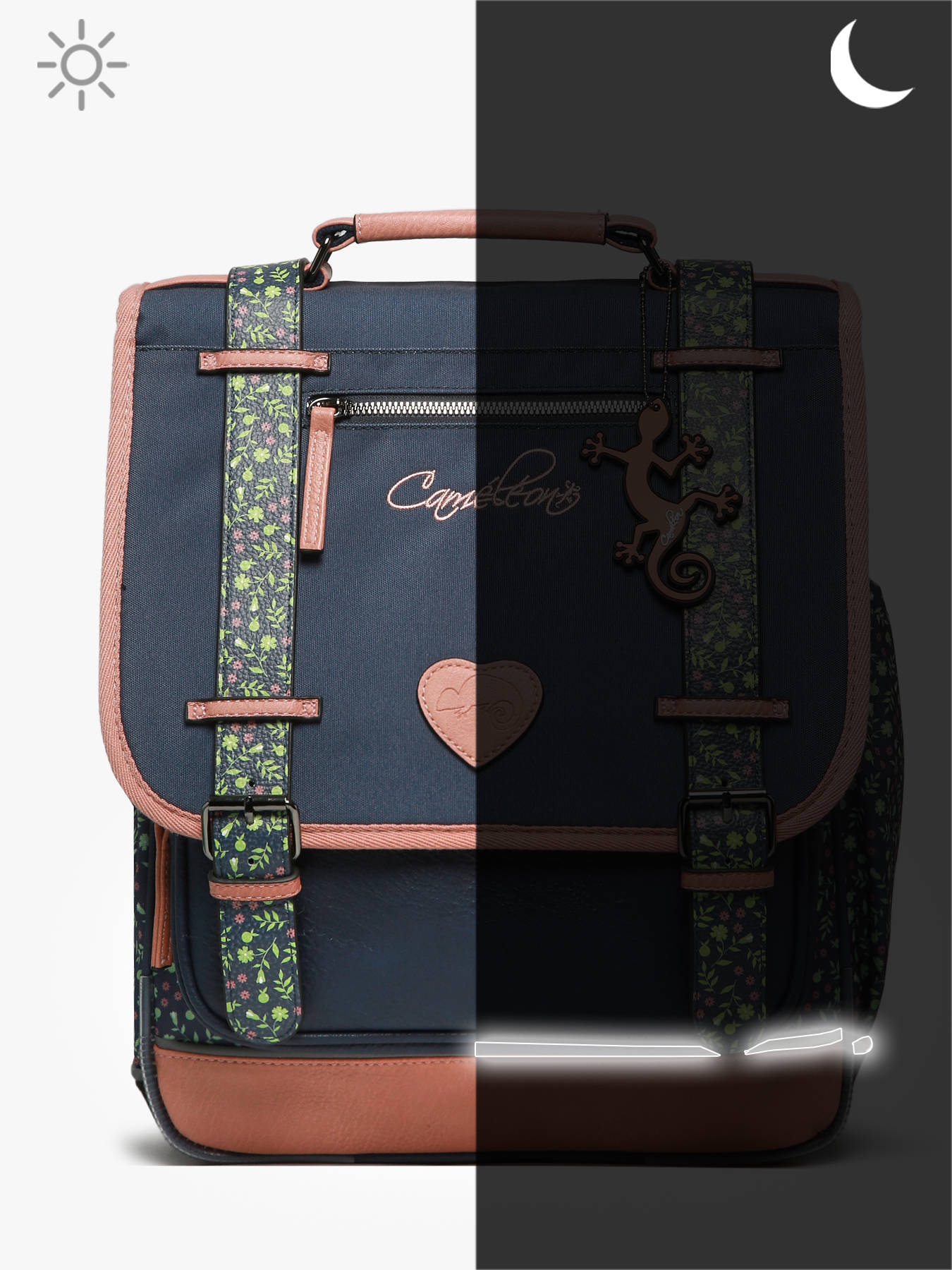 39 cm - 19 litres - 1.12 kg ~ Sac à dos enfant 39 cm primaire de la ligne Vintage Fantasy signé Caméléon. On adore ce cartable au format revisité, idéal pour les petits gabarits voulant avoir un sac à dos par exemple. Ce sac enfant est idéal pour le CP et le CE1. Le poids des affaires scolaires sera mieux reparti, ce qui soulagera le dos des enfants. Pour le confort des enfants, le dos et les bretelles du sac à dos sont rembourrés, le fond du sac est renforcé. Côté sécurité, ce cartable dispose de bandes réfléchissantes. Les deux compartiments de ce cartable seront parfaits pour accueillir des cahiers format A4. Un emplacement pour la règle a été prévu ainsi qu'un emplacement pour la gourde. Fabriqué en polyester recyclé imperméable.